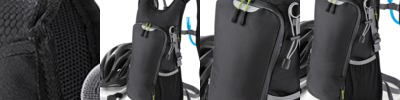 - 2 mesh lined zip closing side pockets, 1 mesh lined zip closing chest pocket, 2 spacious inside pockets and 1 inside phone pocket