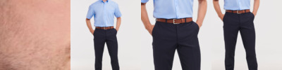 - Navy contrast helps to provide a corporate image whilst disguising scuffs around hem and cuff areas
