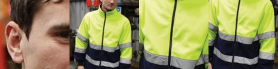 - Hi-Vis Yellow and Navy bottom fleece with 2 reflective bands around the body and arms