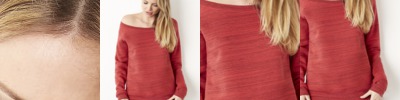 - Shoulders and armholes with flatlock topstitch