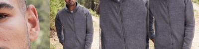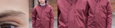 - Concealed hood in collar with adjuster